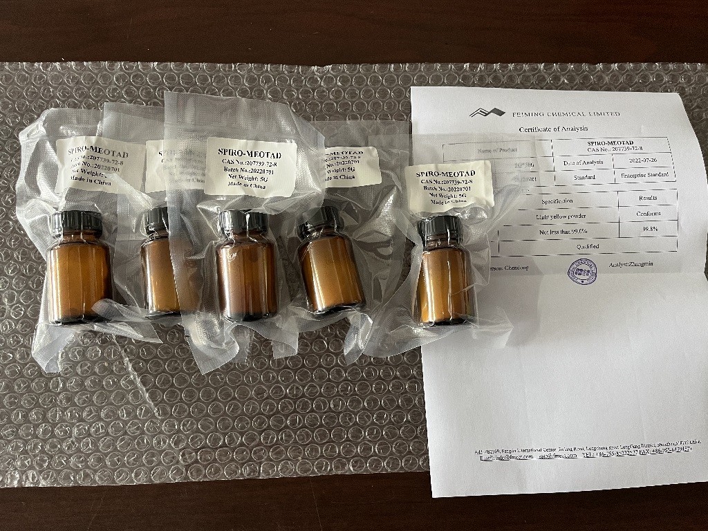 | 강조하다 | 처리 가능성 스피로-오메타드,HTL 스피로- 오메타드,전자 속성 스피로-오메타드 |